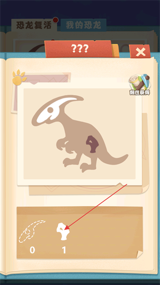3、拖动下面从考古场带回来的化石碎片放置到图片上合适的位置。