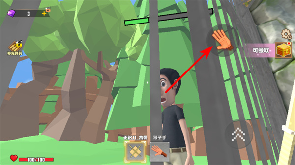 3、遇到被铁笼困住的角色时,点击右侧手掌图标,可尝试与对方互动,推进游戏剧情或获取关键信息。