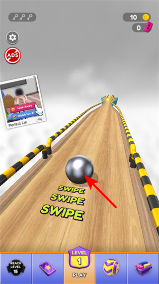 1、在关卡启动界面,点击PLAY按钮进入滚球关卡,这是开启赛道玩法的基础步骤,后续可体验滚球操控、收集道具内容。