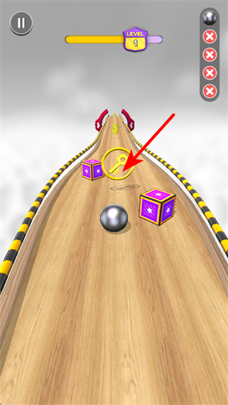 2、进入赛道后,通过滑动操作控制滚球左右移动,调整滚球的行进路线,避开赛道边缘的障碍,保持在赛道中央稳定前进。