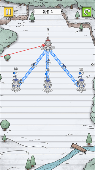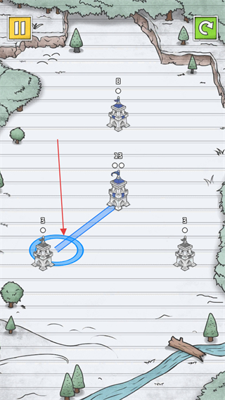 1、游戏内通过滑动己方防御塔,画出连接线进行攻占其他防御塔。