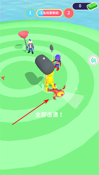 2、操控角色用武器击溃其他玩家,这是赢得对战的核心操作,攻击时需瞄准其他玩家的位置并快速出击。