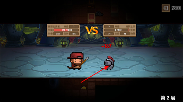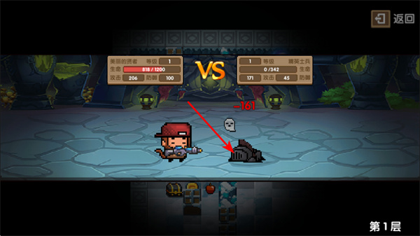 1、通过攻击削减敌人生命值,这是推进冒险的关键操作,关注自身的属性差异。