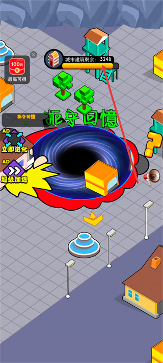3、化身为黑洞去吞噬周围的一切,进行各种有趣的挑战。