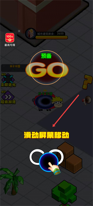 2、进入场景后,通过滑动屏幕控制黑洞移动。