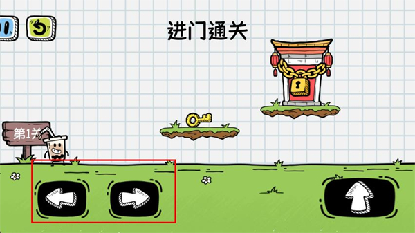 1、点击左右方向键,控制角色在场景中移动,靠近目标区域。