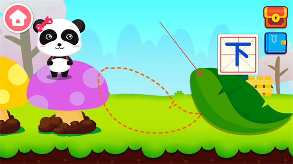 2、根据游戏提示,在屏幕上跟着提示一起学习汉字的书写笔画。