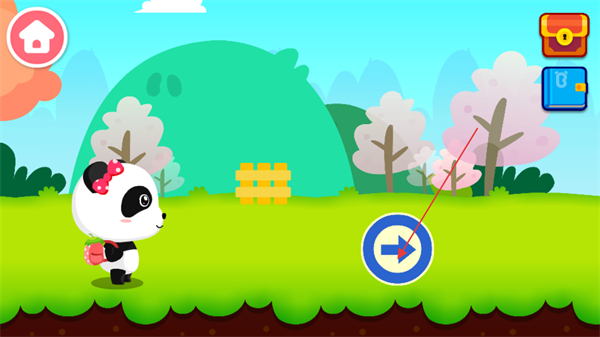 1、进入游戏后,点击右侧的蓝色箭头按钮可以控制熊猫宝宝向前出发。