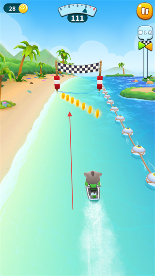 3、穿过金币区域收集金币,冲过终点线完成比赛。