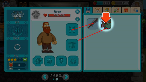 3、进入角色界面,可给角色Ryan配备武器、盔甲等装备,提升角色的战斗或工作能力。