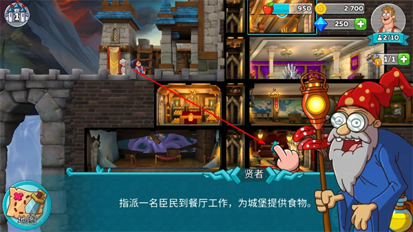4、根据提示,指派臣民到餐厅工作,为城堡提供食物,保障城堡的资源供应,维持城堡的正常运转。