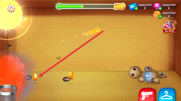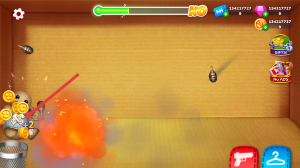 2、武器解锁使用:通过攻击木偶人获得积分,积分自动转化为金币,利用无限钞票优势或金币解锁冷兵器、超级武器等各类道具,熟练的掌握每种武器的特性。
