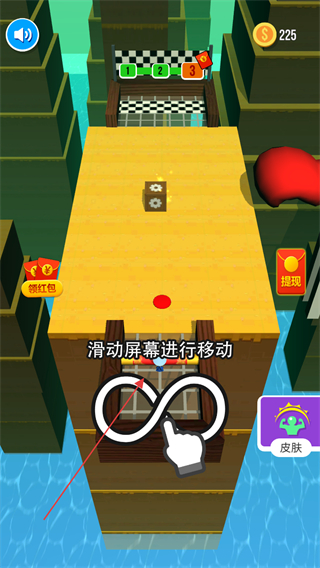1、进入游戏后直接就在关卡画面,通过长按滑动屏幕控制小人移动以开始游戏。