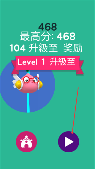 4、完成游玩后,界面显示Level1升級的提示,点击右侧的播放按钮,即可继续进行后续的游戏内容。