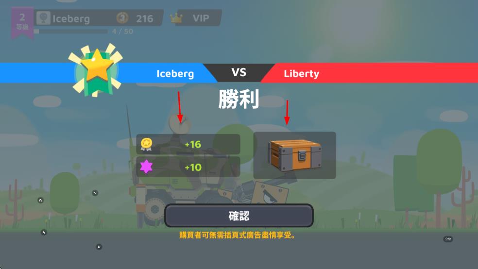 1、对战胜利后,获得金币、经验等奖励和宝箱,积累资源用于战车升级与部件解锁。