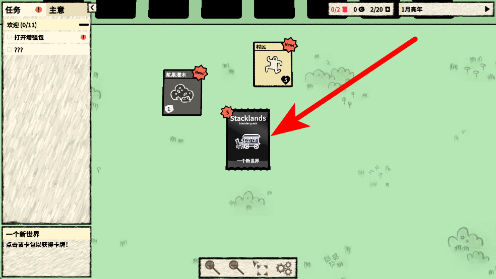 1、进入后,首先可点击途中的卡包,从中获取卡牌,这些卡牌会为后续的操作和任务完成提供基础,开启卡牌相关的游戏进程。