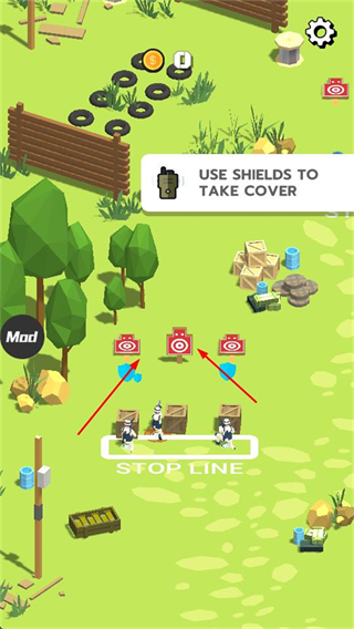 2、战斗时,可借助盾牌进行掩护,躲避敌方攻击,同时瞄准前方目标进行射击,提升战斗生存与攻击效率。