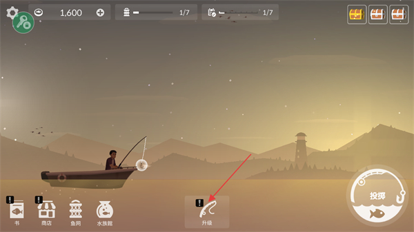 1、在垂钓界面点击下方的升级按钮,可以对渔具进行升级。