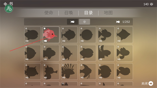 4、在世界之书中,点击目录界面可以查看到历史钓上的鱼类信息。