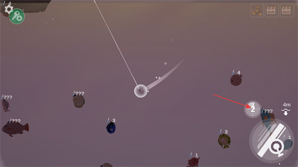 3、将鱼钩抛入海中后,点击雷达按钮可以查看鱼钩周围的鱼类需要什么条件才能钓上来。