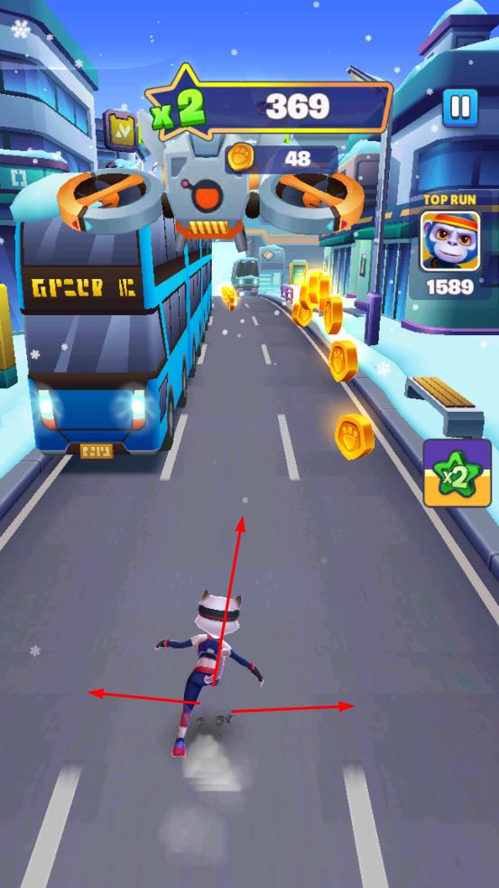 1、滑动操控角色移动:通过滑动动作控制角色左右转向、调整位置,在不同场景中灵活穿梭,比如穿过隧道时避开两侧墙壁,在街区绕过行人,熟练掌握滑动节奏是顺利逃生的基础。