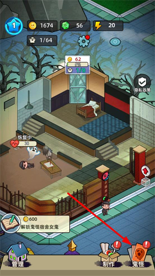 2、完成装饰制作后,点击底部的鬼怪选项,进入鬼怪列表页面,