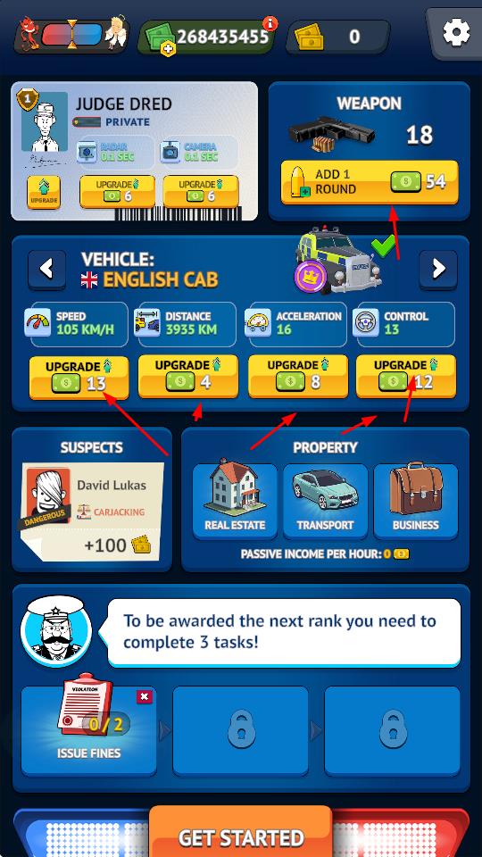 1、可对角色、武器、车辆进行升级,提升各方面属性,为任务做准备,还能查看嫌疑人信息。