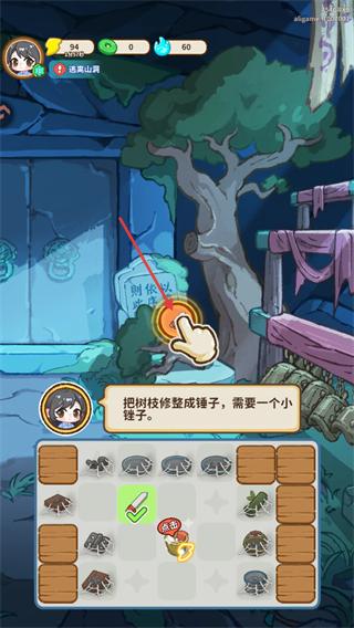 2、依据提示的要求,点击物品栏内的对应工具进行合成,完成该步骤的物品获取操作。