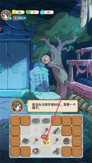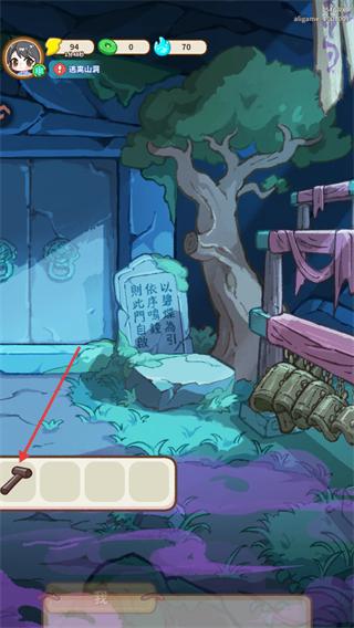 4、处于逃离山庙场景下,将获取的锤子放入下方栏位,继续推进该场景的解谜与逃离相关流程。