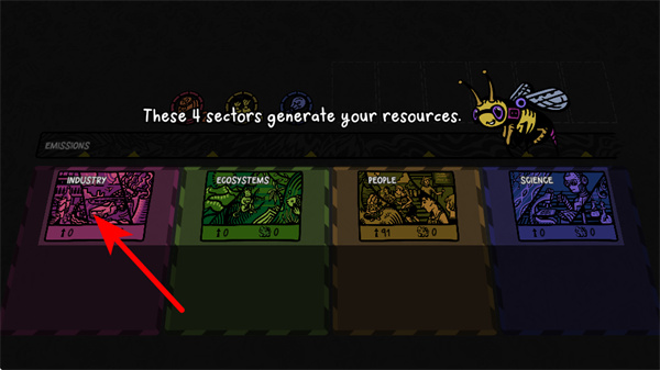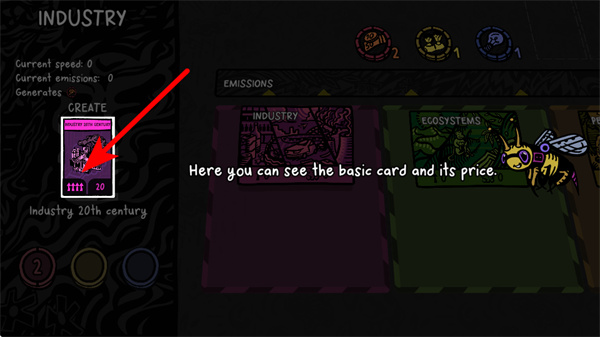 3、在工业板块界面,点击红色箭头指向的基础卡牌,查看其价格与效果,确认该卡牌的资源增益属性,规划建设优先级。