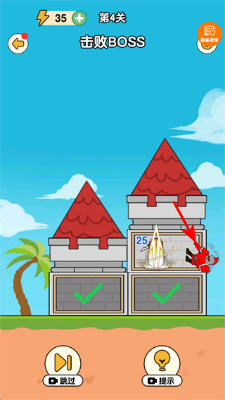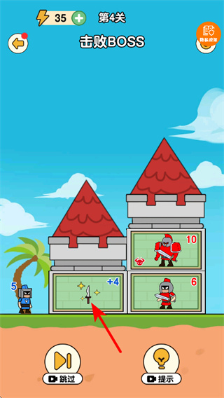 2、在关卡中遇到武器道具如带有+4标识的武器时,需点击拾取,拾取后可提升自身攻击力,更快击败BOSS。