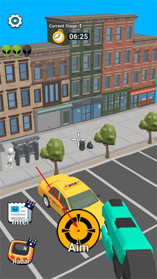 打造了沉浸式的城市狙击玩法,以细节丰富的卡通3D城市场景为舞台,建筑元素高度拟真,射击时的枪械反馈与外星人被击中的动态效果,都让狙击过程充满真实感与代入感。