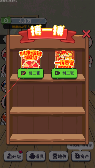2、当遇到瓶颈时,可以选择搏一搏抽取三张刮刮乐看看运气怎么样。
