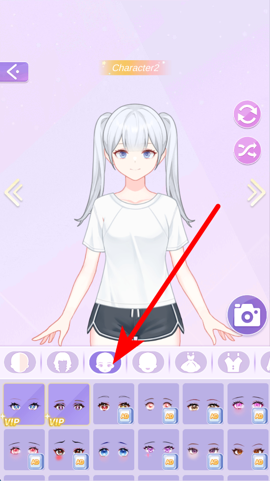 2、在装扮界面,下方有不同的装扮分类选项,比如眼部、发型等,点击对应的分类,可选择具体的装扮元素,为角色更换合适的眼部造型、发型等。