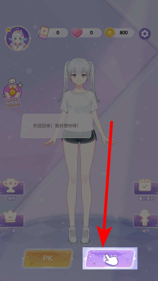 1、进入游戏后,点击下方带有特效的按钮,进入装扮界面,此时可开始对角色进行各种装扮调整,开启创意装扮之旅。