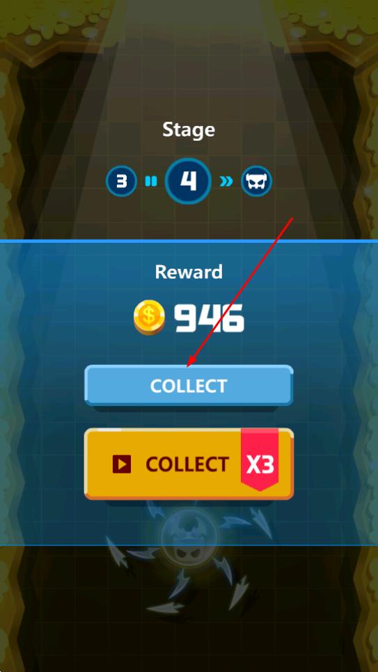 4、成功通关后,会弹出结算界面,展示获得的金币奖励,点击COLLECT按钮即可领取奖励。