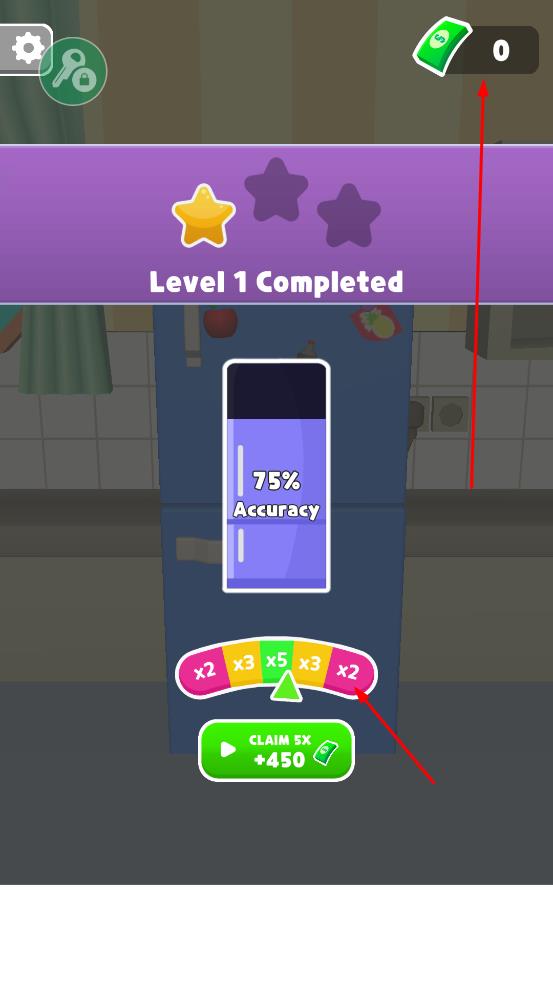 3、每完成一关,会根据准确率获得星星评价与金币奖励,还能通过倍数加成获取更多金币。