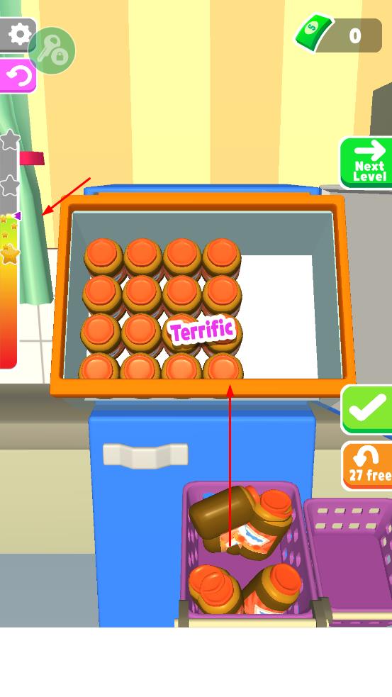 2、完成物品摆放后,若摆放整齐会出现Terrific等评价,接着可进入下一关,持续挑战收纳任务。