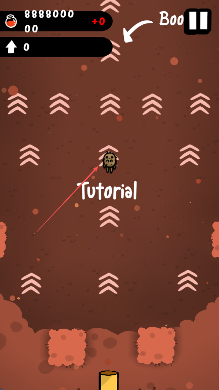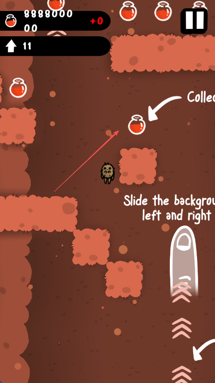 1、按画面提示Slide the background left and right左右滑动背景控制角色移动,收集红色药剂瓶得分,留意左上角高度数值。