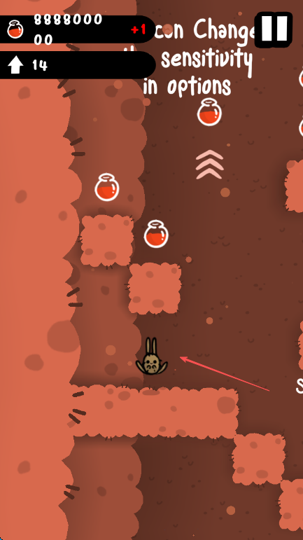 3、若操作不适可按提示Change sensitivity in options在设置中更改灵敏度,控制角色跳跃收集药剂,提升分数。