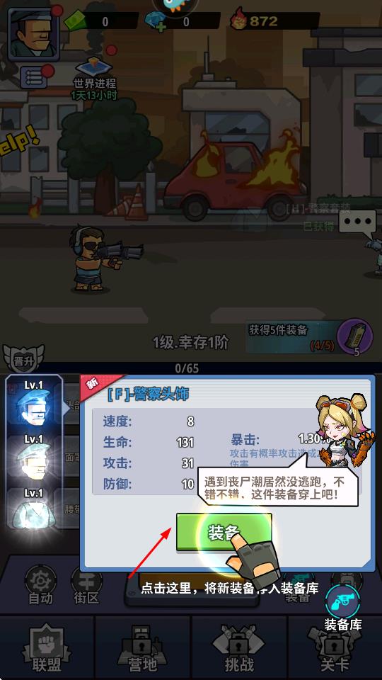 2、养成角色强化战力:使用获取的资源提升角色等级,强化攻击、防御等属性,解锁更高级技能,同时升级或更换武器装备,持续增强战斗力以应对更强的僵尸威胁。