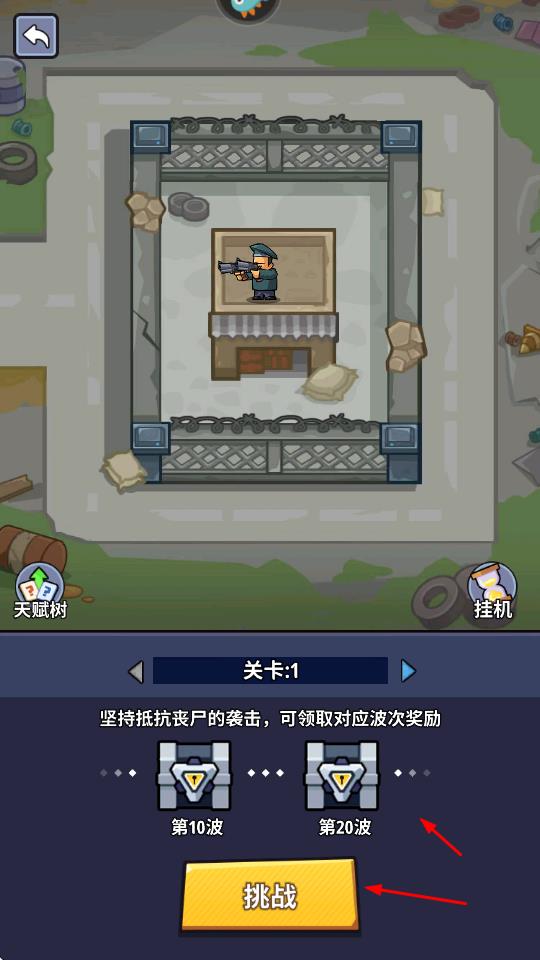 3、可参与关卡挑战,点击挑战按钮,抵御丧尸的多波次袭击,坚持到对应波次,领取奖励。