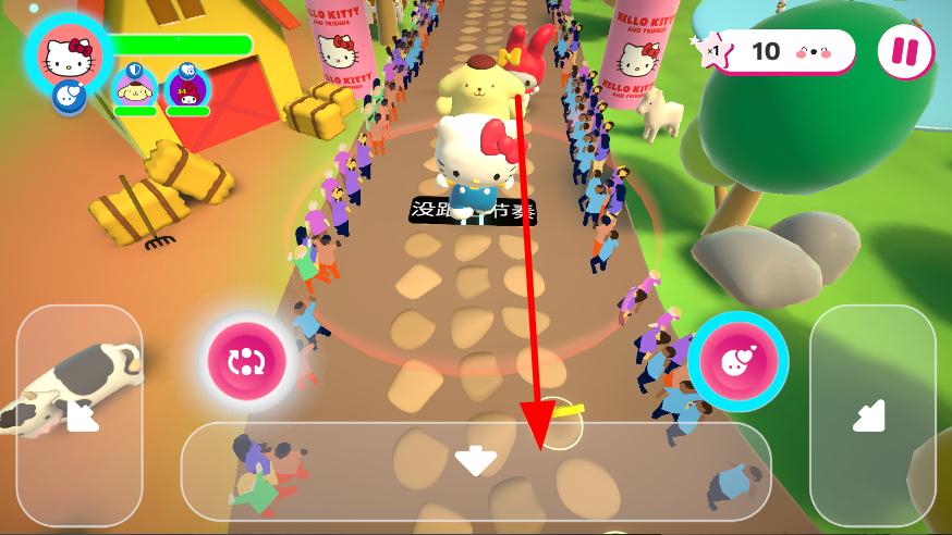 4、旅行场景中,通过操作按钮操控凯蒂猫移动,在道路上前行,在场景中的拾取金币,完成旅行中的各项探索与挑战,享受旅行乐趣。