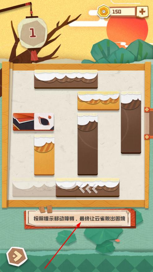 2、进入关卡后,会看到有各类障碍阻挡着云雀的前进,根据提示移动障碍,为云雀创造可通行的路径。