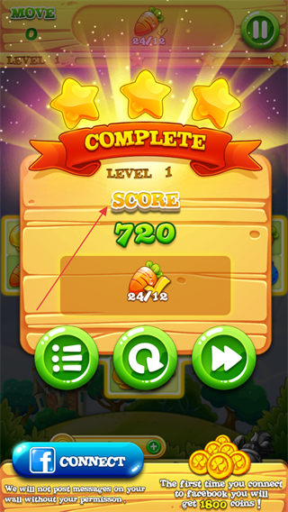 4、完成关卡任务成功通关后,会根据获得的分数进行评分并给予金币奖励。
