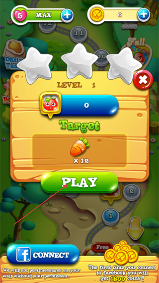 2、进入关卡后注意上方需要的任务目标和可以使用的行动次数,在达成目标的同时尽量多的获取分数增长下方分数进度条。