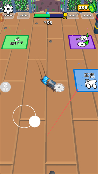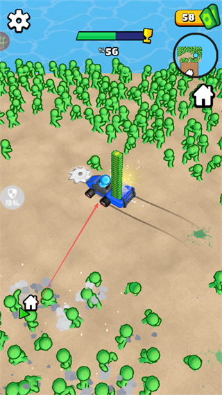 操控武装汽车在密集僵尸群中快速穿梭,切割动作流畅直观,僵尸被切割时的反馈清晰,随着装备升级割草范围和效率逐步提升,带来酣畅淋漓的解压体验。
