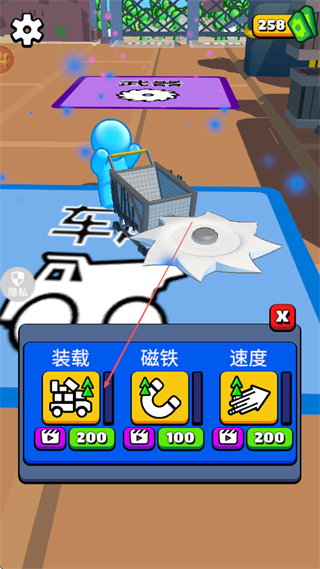 3、花费资源升级车辆属性如装载、磁铁、速度,增强车辆的战斗和收集效率。