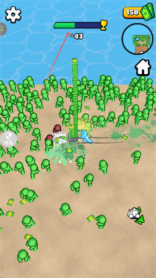 1、在绿色人群区域,利用武器范围攻击消灭敌人,积累分数和资源。