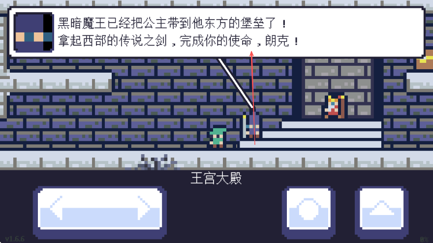 3、与国王旁的人物对话,得知黑暗魔王已经把公主带到他东方的堡垒了!拿起西部的传说之剑,完成你的使命,朗克!。